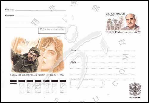 电影导演M·K·卡拉托佐夫诞生百年,肖像、拍摄场景及电影剧照邮资封1全