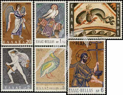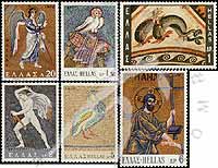 镶嵌画:9世纪达菲尼教堂《天使报喜》、德洛斯《海豚》、11世纪路卡斯修道院《圣灵》、前14世纪皮莱阿《猎手》、乔治教堂《鸟》等6全