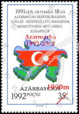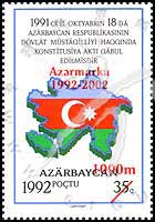 阿塞拜疆独立10周年,国旗与地图改值加盖票1全