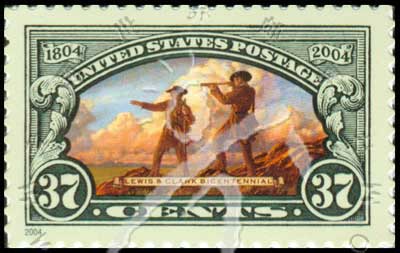 路易斯与克拉克探险200周年,肖像及探险场景不干胶自贴票1全