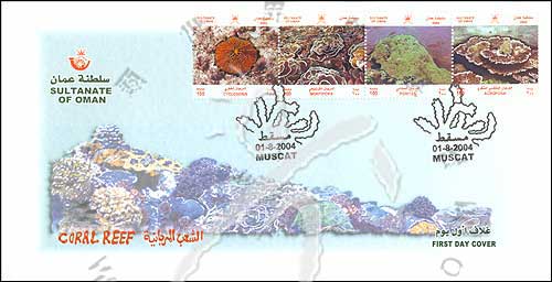 珊瑚,微孔珊瑚、鹿角珊瑚、圆珊瑚及蔷薇珊瑚4全邮票首日封(盖珊瑚戳)