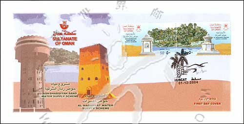 阿曼Al Massarrat和东部供水计划,国徽及水井2全邮票首日封