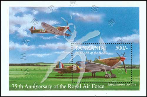 英国皇家空军建军75周年,超级马林喷火式战斗机小型张