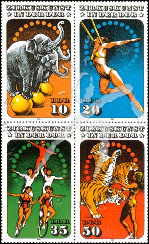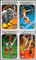 马戏艺术,驯象、空中飞人、自行车车技及驯虎4联