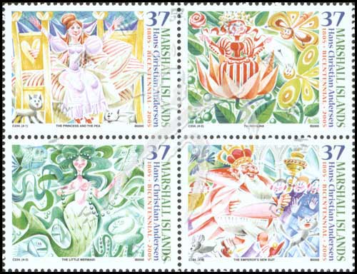 童话大师安徒生诞生200周年,童话故事《豌豆公主》、《拇指姑娘》、《小美人鱼》及《皇帝的新装》4联