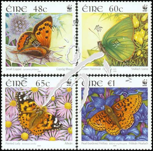 蝴蝶,红灰蝶、姬红蛱蝶、珍珠边豹纹蝶及WWF世界野生动物基金会徽志4全