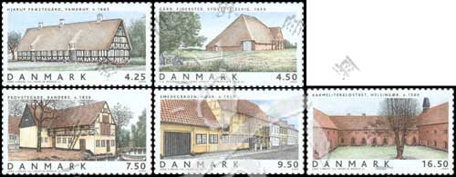 丹麦房屋建筑系列四,早期房屋雕刻版5全(含高面值票)