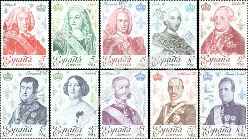 波旁王朝的历代国王,菲律普五世,路德维希一世,费迪南六世,卡尔二世、四世,费迪南七世,伊萨贝拉二世,阿尔米索七世、八世及卡洛斯一世10全