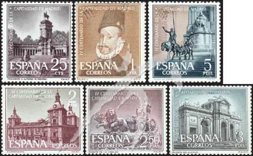 马德里成为西班牙首都400周年,雷蒂罗公园里的阿方索十二世纪念碑、A·C·桑切斯绘《国王菲力普二世》、市政府及自然女神尼贝莱喷泉等6全