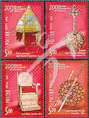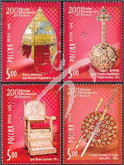 莫斯科克里姆林宫国立历史文化博物馆建成200周年,伊凡雷帝(1530-84)的王座、俄沙皇米哈伊尔·罗曼诺夫的权杖、头盔、剑及盾4全