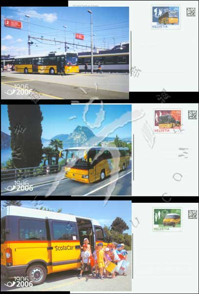 瑞士邮政巴士百年,旅游巴士、市内交通巴士及校车服务邮资片3全
