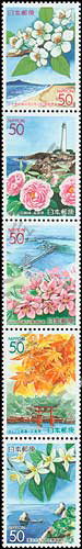 故乡邮票—中部5县的县花,二十世纪梨花、牡丹、桃花、枫叶及夏橘花5联(我社已售缺)