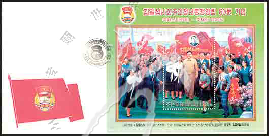 金日成社会主义劳动青年同盟成立60周年,金日成及青年小型张首日封