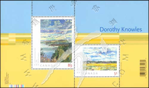 加艺术系列,桃乐茜·诺尔斯绘画《油菜地》及《北萨斯喀彻温河》小全张(2票)