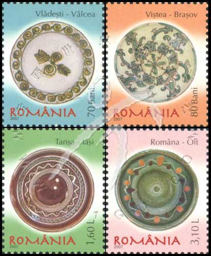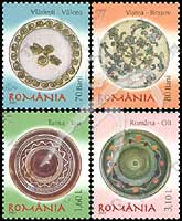 罗马尼亚陶器—农家器皿系列二,各式瓷盘4全
