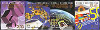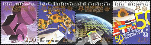 欧罗巴邮票发行50周年,欧洲邮联徽志、数字“50”、地球及国旗等4联
