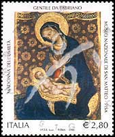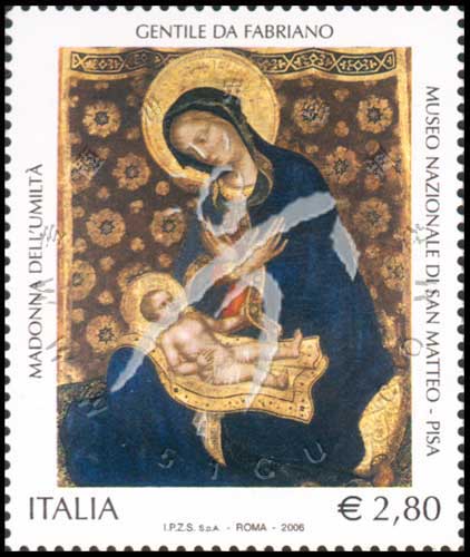 艺术与文化遗产系列,意大利15世纪著名画家法布里亚诺画作《谦卑的圣母》高面值票1全