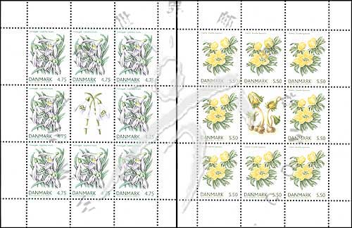 花卉,雪花莲及乌头2枚雕刻版小版张(各8票+1枚附票)