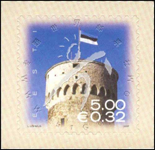 爱沙尼亚国旗,在赫尔曼高塔上飘扬的国旗不干胶自贴票1全