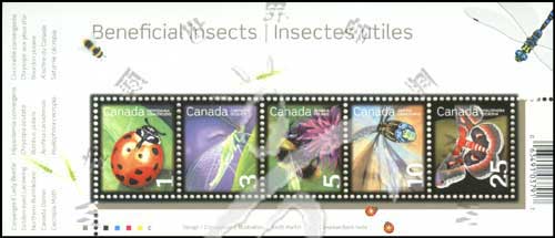 昆虫,会纹长足瓢虫、草蜻蛉、北美大黄蜂、加拿大蜻蜓及惜古比天蚕普票小全张(5票)