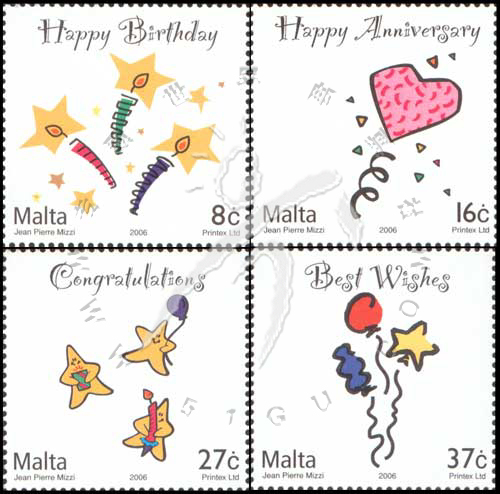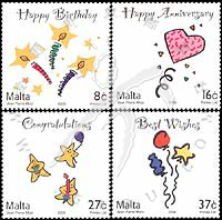 特殊场合邮票,《生日快乐》、《周年快乐》、《祝贺》及《祝福》4全