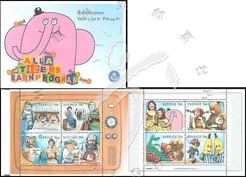 瑞典电视台开播50周年,经典儿童节目小本票(8票)
