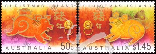 猪年生肖,身背聚宝盆的猪、朱漆大门及中文“猪年”2全