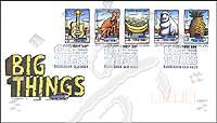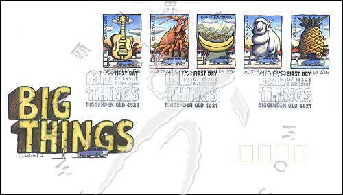 大型雕塑,新南威尔士的大金色吉他、南澳洲的大龙虾、新南威尔士的大香蕉、大美丽奴羊及昆士兰的大菠萝雕塑5联邮票首日封