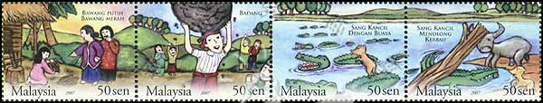 马来西亚传统童话,《蒜头葱头》、《巴登》、《灵鹿与鳄鱼》及《灵鹿勇救水牛》4联