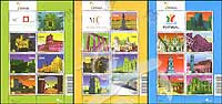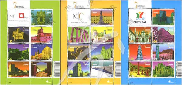 葡萄牙的文化遗产,阿尔科巴萨修道院、骑士城堡、巴塔利亚修道院、贝伦塔、圣方济天主教堂、牧师塔、公爵宫等3枚小版张(各7票+1枚附票)