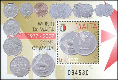 马尔他硬币发行35周年,各时期发行的硬币小型张