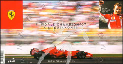 2007年方程式赛车车手总冠军吉米·莱科宁,肖像及赛车不干胶自贴票小全张(2票)