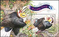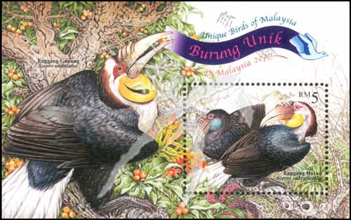 鸟类,印支皱盔犀鸟及花冠皱盔犀鸟凹凸压印小型张(我社已售缺)