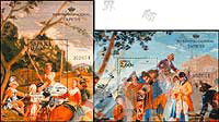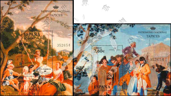 西班牙文物,西班牙画家哥雅设计的挂毯《荡秋千》和《盲人吉他手》2枚小型张(我社已售缺)