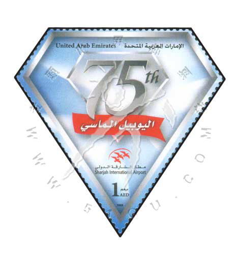 阿联酋沙迦国际机场建成75周年,数字“75”钻石形票1全(我社已售缺)