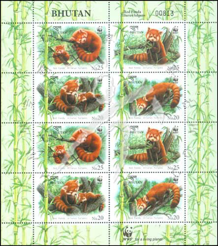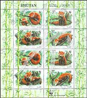 红熊猫,WWF野生动物基金会徽志小版张(2套共8票)