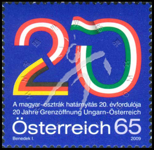 匈牙利和奥地利边境开放20周年,两国国旗色组成的数字“20”1全(与匈牙利和德国联合发行)