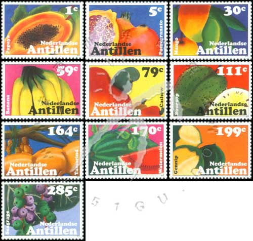 水果,番木瓜果、石榴、芒果、香蕉、腰果、刺果番荔枝、西瓜及葡萄等再版票10全
