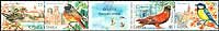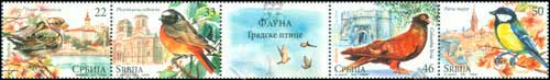 鸟类,家麻雀、赭红尾鸲、家鸽及大山雀带过桥4联