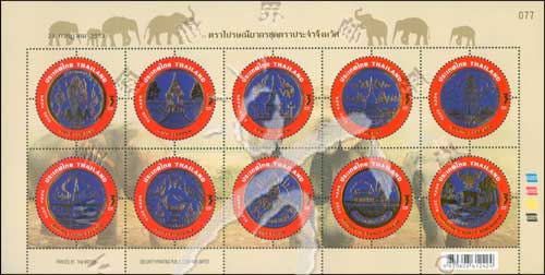 省徽系列五,华富里、南邦、喃奔、黎府、西萨菊、沙功那空、宋卡、沙敦、北榄及夜功府的省徽小版张(10票)
