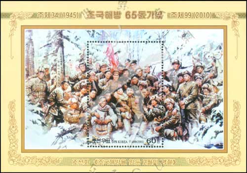 朝鲜解放65周年,军民合影及雪景等小型张