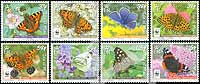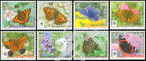 蝴蝶,荨麻蛱蝶、锯眼蝶、银斑豹蛱蝶、蓝色蝴蝶、暗脉粉蝶、白钩蛱蝶、斑点木蝶、赤蛱蝶及WWF世界野生动物徽志8全