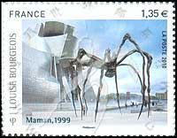 艺术系列,女性艺术家路易丝·布尔乔亚1999年大蜘蛛雕塑作品《Maman》不干胶自贴票1全