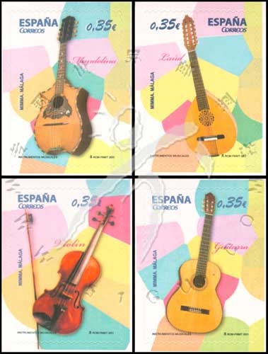 乐器系列,吉他、鲁特琴、曼陀林及小提琴不干胶自贴票4全