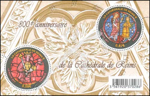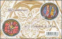 兰斯大教堂建成800周年,玻璃窗画及雕刻圆形票小全张(2票)(我社已售缺)