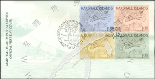 龙年生肖,绘画蓝龙、粉龙、黄龙及绿龙4全邮票首日封