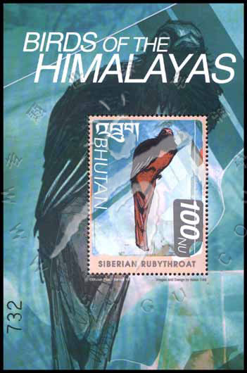 喜马拉雅山鸟类系列二,红喉野鸲小型张