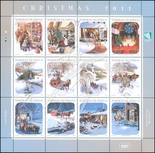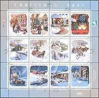 圣诞节,圣诞节购物、圣诞树、圣诞花环、在教堂中唱诗及滑雪撬等活动小版张(12票)