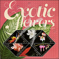 加勒比海奇异花卉一,鹤望兰、栀子花、孤挺花、姜花、蝎尾蕉及荷包牡丹三角形票小版张(6票)