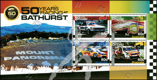 巴瑟斯特耐力赛举办50周年,赛车及帕诺拉马山赛道小全张(4票)
